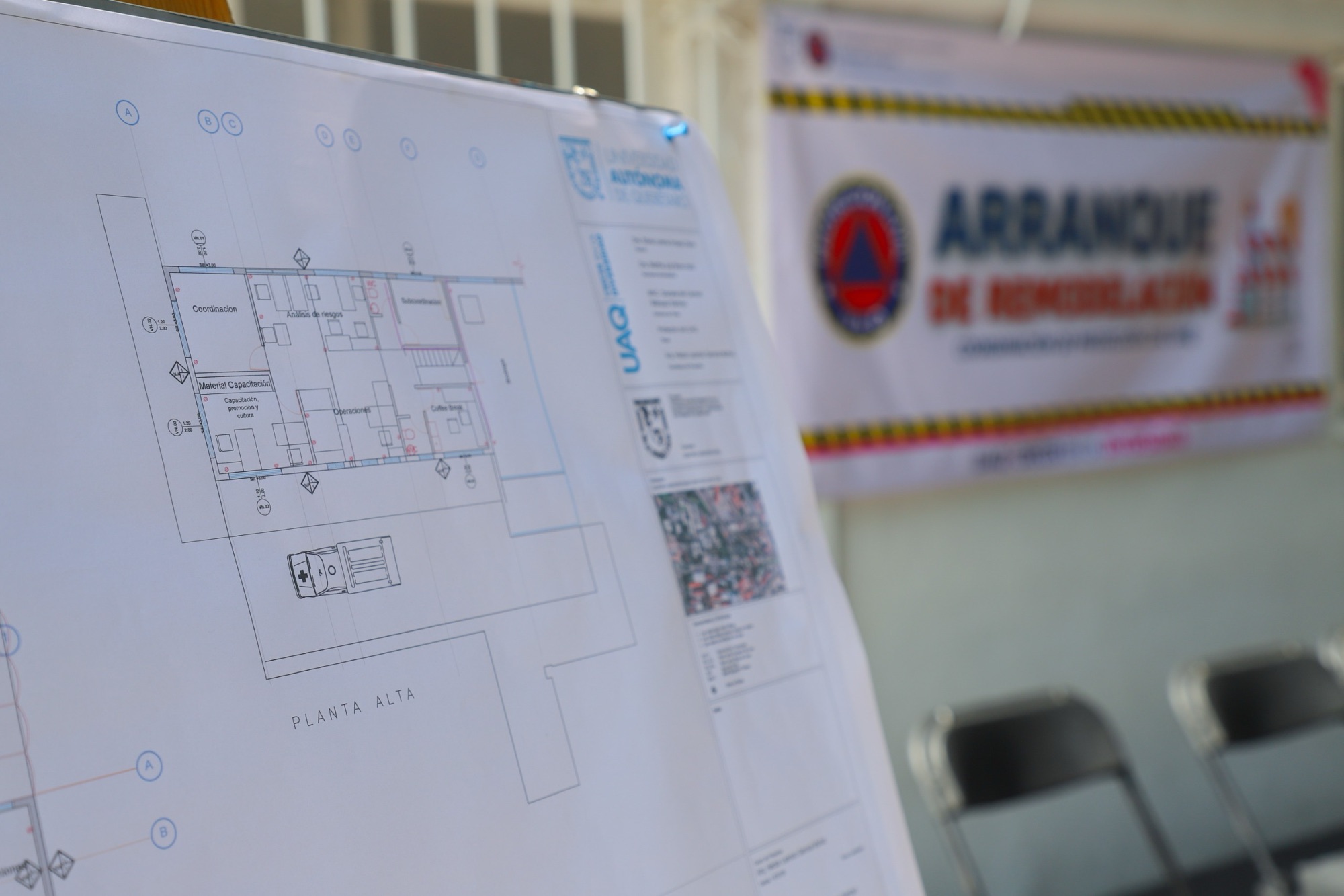 La Coordinación de Protección Civil (CPCU) de la Universidad Autónoma de Querétaro (UAQ) obtuvo un recurso de 357 mil pesos para renovar las instalaciones de este organismo en el Centro Universitario: el sistema eléctrico e hidrosanitario, pintura, cancelería, zona de descanso, así como la construcción de una rampa de acceso para personas con discapacidad y de una plancha en el patio de maniobras de vehículos.