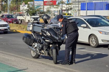 Querétaro, Qro, a Lunes 19 de Enero del 2026.-La tarde de este lunes, cuerpos de emergencia atendieron a un elemento de la Policía Estatal de Querétaro, que se desplazaba a bordo de una motopatrulla s...