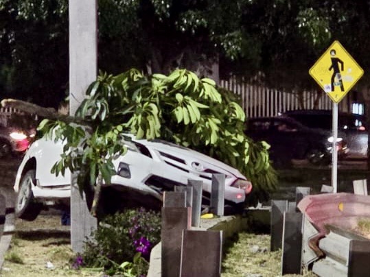 Querétaro, Qro, a Viernes 21 de Noviembre del 2025.- Aparatoso accidente se registró esta noche, en la incorporación de Constituyentes