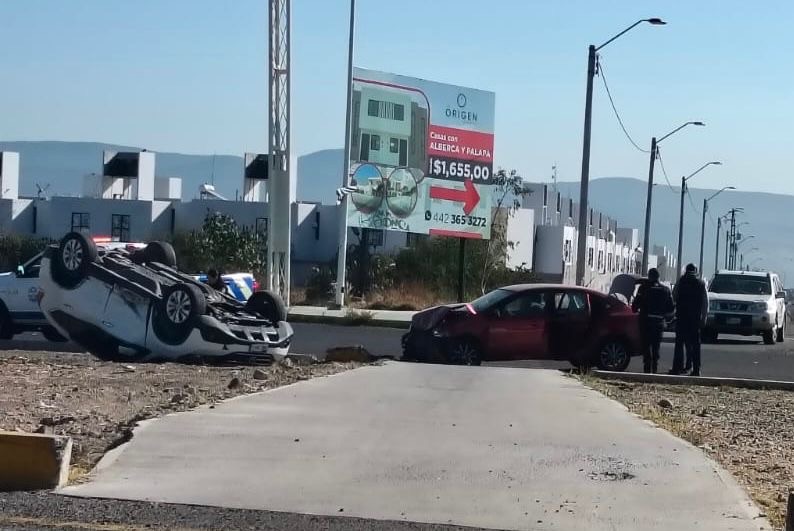 Fue en la intersección con avenida del Parque, en donde se registró la colisión de ambos vehículos, sin embargo, solo uno terminó con las llantas arriba.