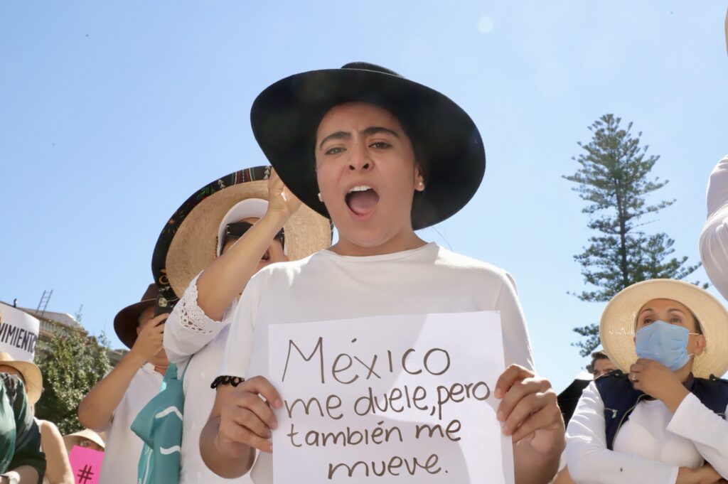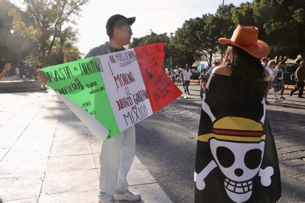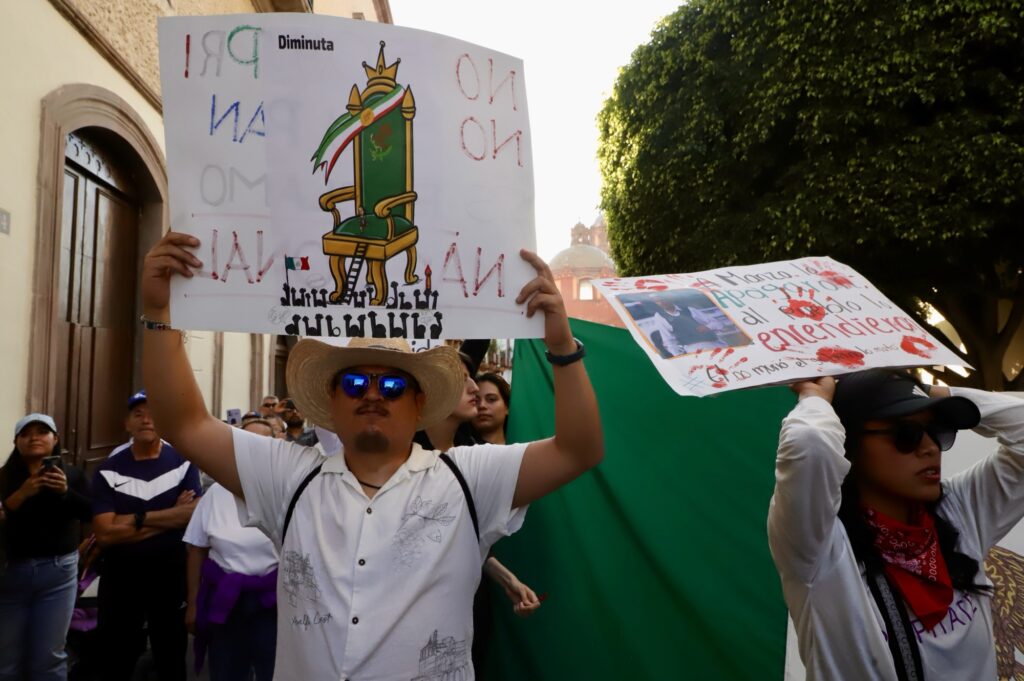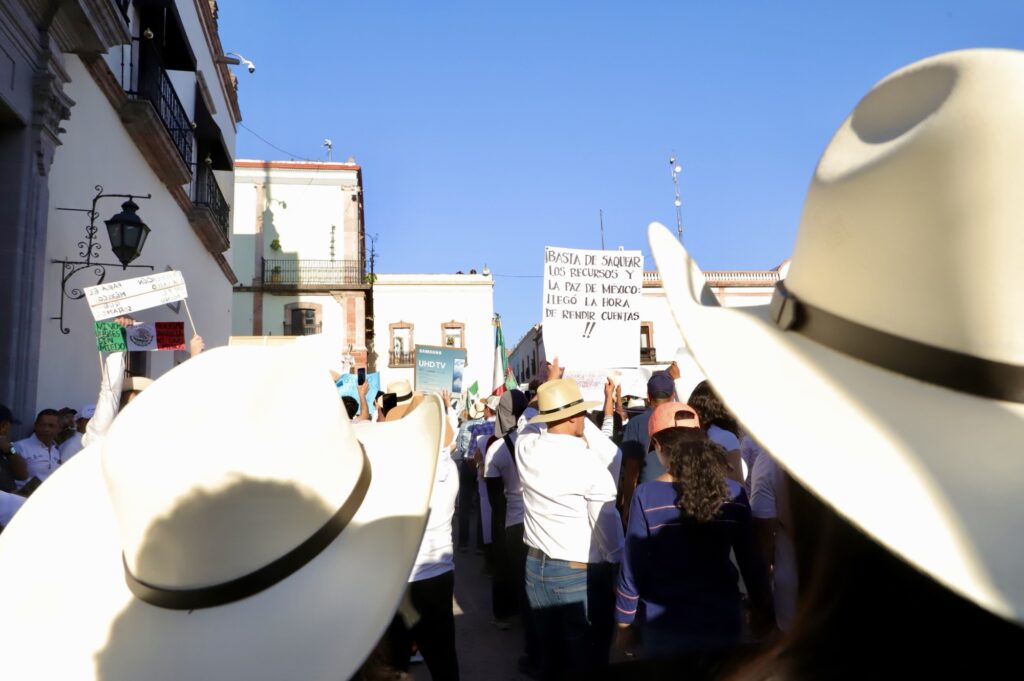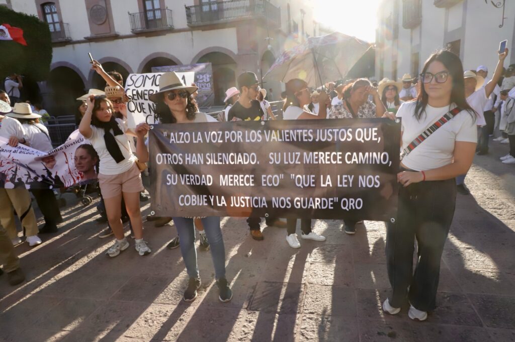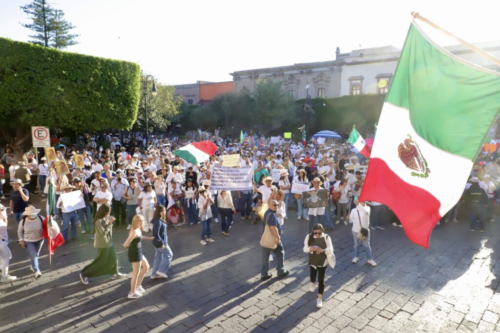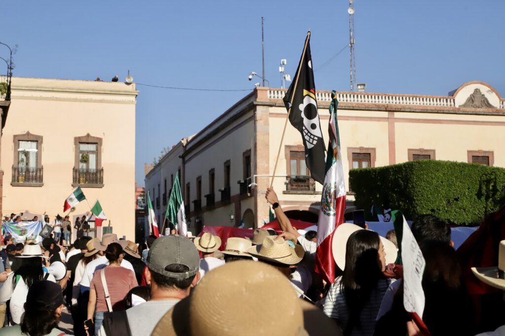 Al ritmo de “Ilusión 98” comenzaron las protestas para exigir paz y justicia, la ciudadanía se hizo escuchar en Querétaro, vestidos de blanco y portando sombreros, así como la emblemática bandera pirata, que representa la igualdad.