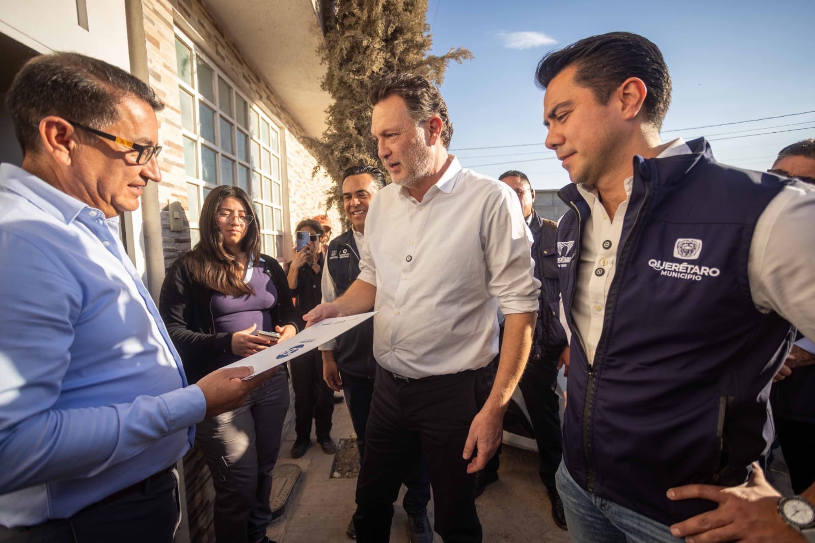 A esta entrega se sumó el presidente municipal de Querétaro, Felifer Macías Olvera, en donde escuchó a la gente de la delegación Félix Osores.