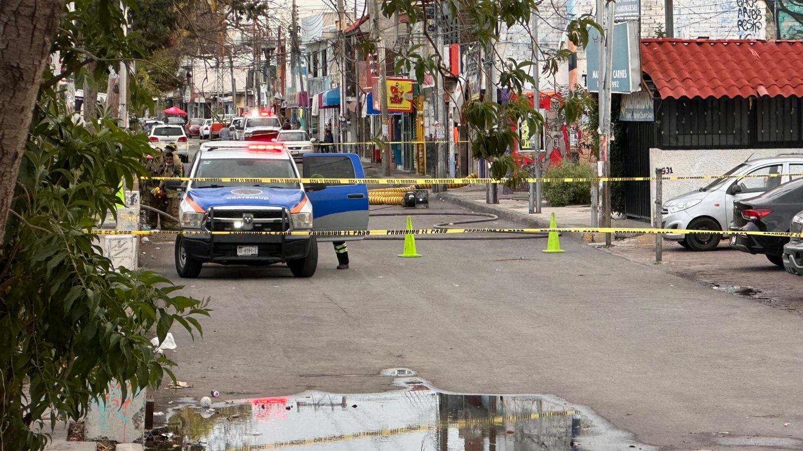 Debido a la fuga de combustible, los socorristas evacuaron los negocios al de daños para evitar intoxicaciones y flamazos, además de qué se cerró la avenida Revolución desde el cruce con Alfonso Reyes hasta avenida de la Poesía.