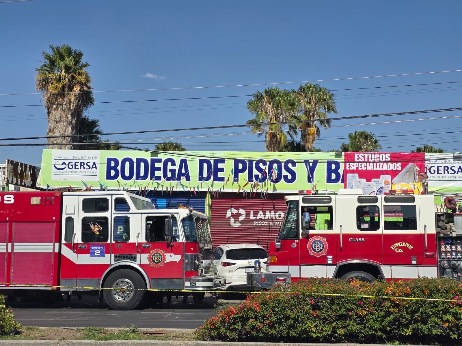 Policías municipales acudieron como primeros respondientes, quienes acordonaron ampliamente al exterior de la bodega y cerraron la vialidad en dirección a Constituyentes, para permitir los trabajos de los cuerpos de emergencia.