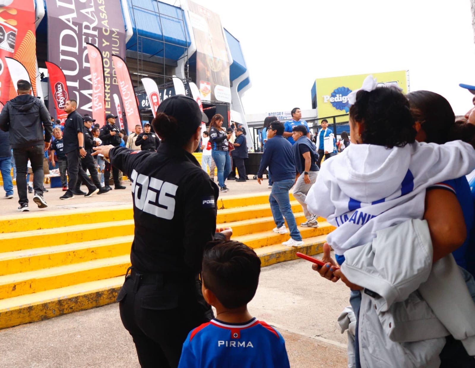 La Policía Estatal desplegó un operativo integral con presencia policial en accesos, gradas y zonas aledañas, además de vigilancia aérea y recorridos preventivos antes, durante y después del evento al sur de la capital.