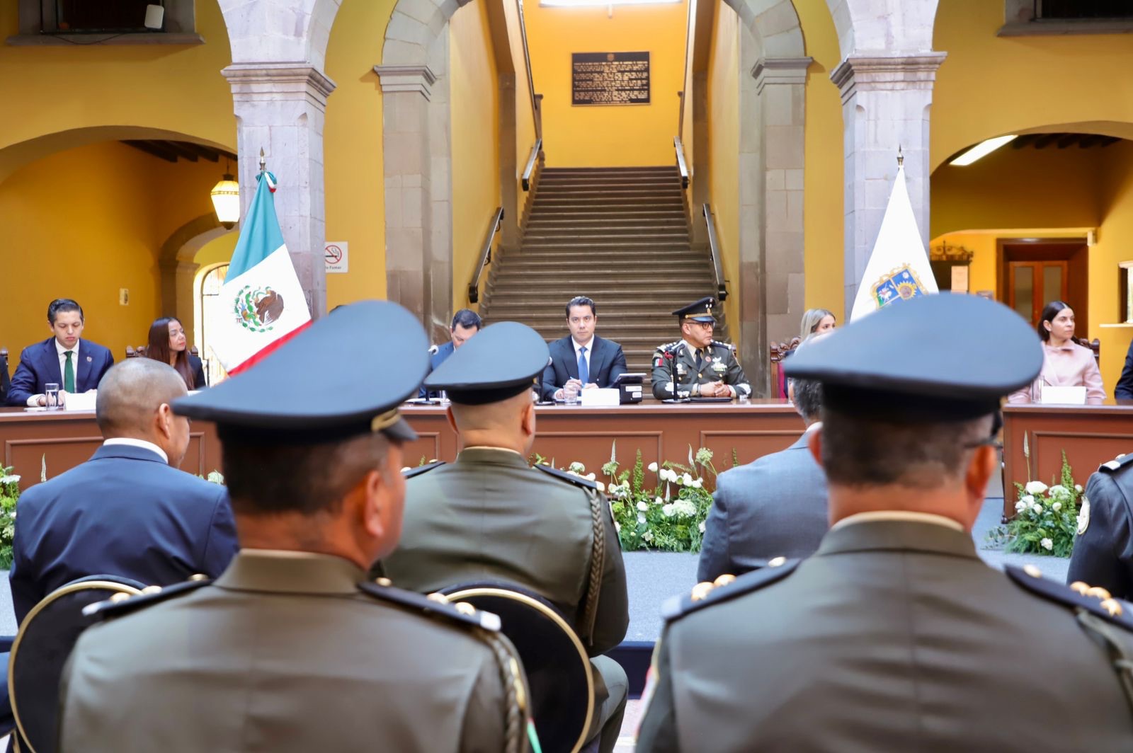Por su entrega permanente en la defensa de la soberanía y la protección de las familias mexicanas, Felipe Fernando Macías Olvera, presidente municipal de Querétaro, encabezó la sesión solemne de Cabildo en el marco de la conmemoración del 113 aniversario del Ejército Mexicano, acto en el que el Ayuntamiento reconoció la labor de las fuerzas armadas.
