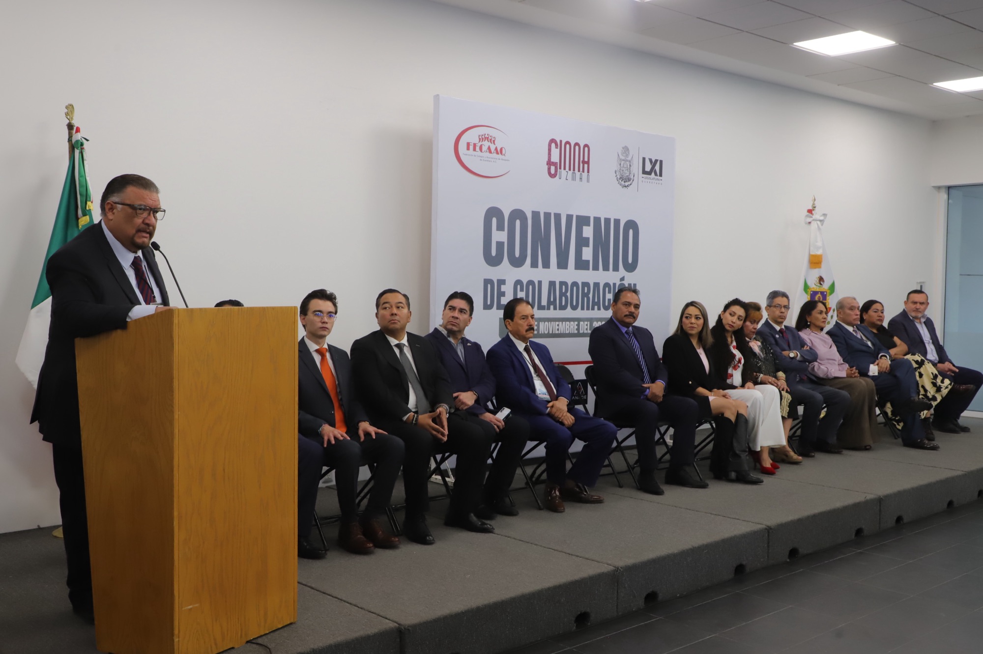 Para fortalecer los trabajos de los distintos órganos de la Legislatura y dar celeridad a los trabajos al interior de las comisiones, Georgina Guzmán Álvarez, en su calidad de presidenta de la Mesa del Congreso Local, signó un convenio de colaboración con la Federación de Colegios y Asociaciones de Abogados de Querétaro, A.C. (FECAAQ) que aglutina a 17 colegios.