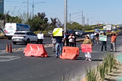 Luis Pérez Un grupo de vecinos de la colonia San Pablo, del municipio de Querétaro, bloquearon carteles laterales de Paseo 5 de Febrero a la altura de dicha zona, en dirección a Santa Rosa Jáure...