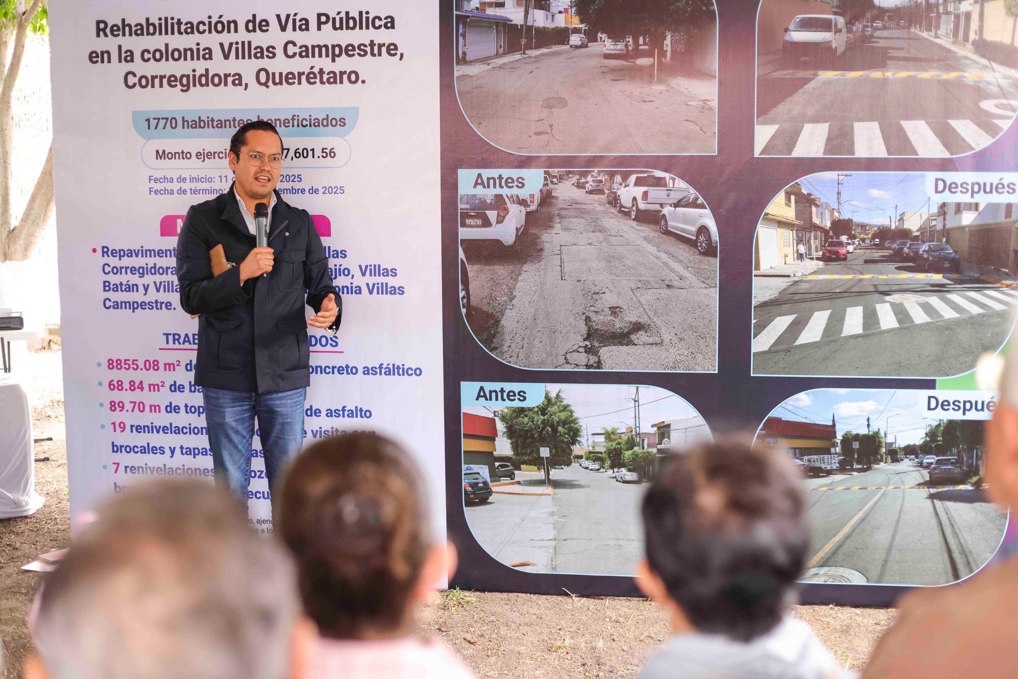 El presidente municipal de Corregidora, Josué David Guerrero Trápala entregó la obra de rehabilitación de cinco calles en la colonia Villas Campestre, la cual beneficia de manera directa a mil 170 hab...